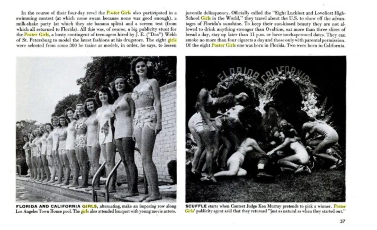 The concept had taken root years earlier, when I came across a 1940s-era photo of swimsuit models from Florida at an event in California during World War II. That struck me as off.