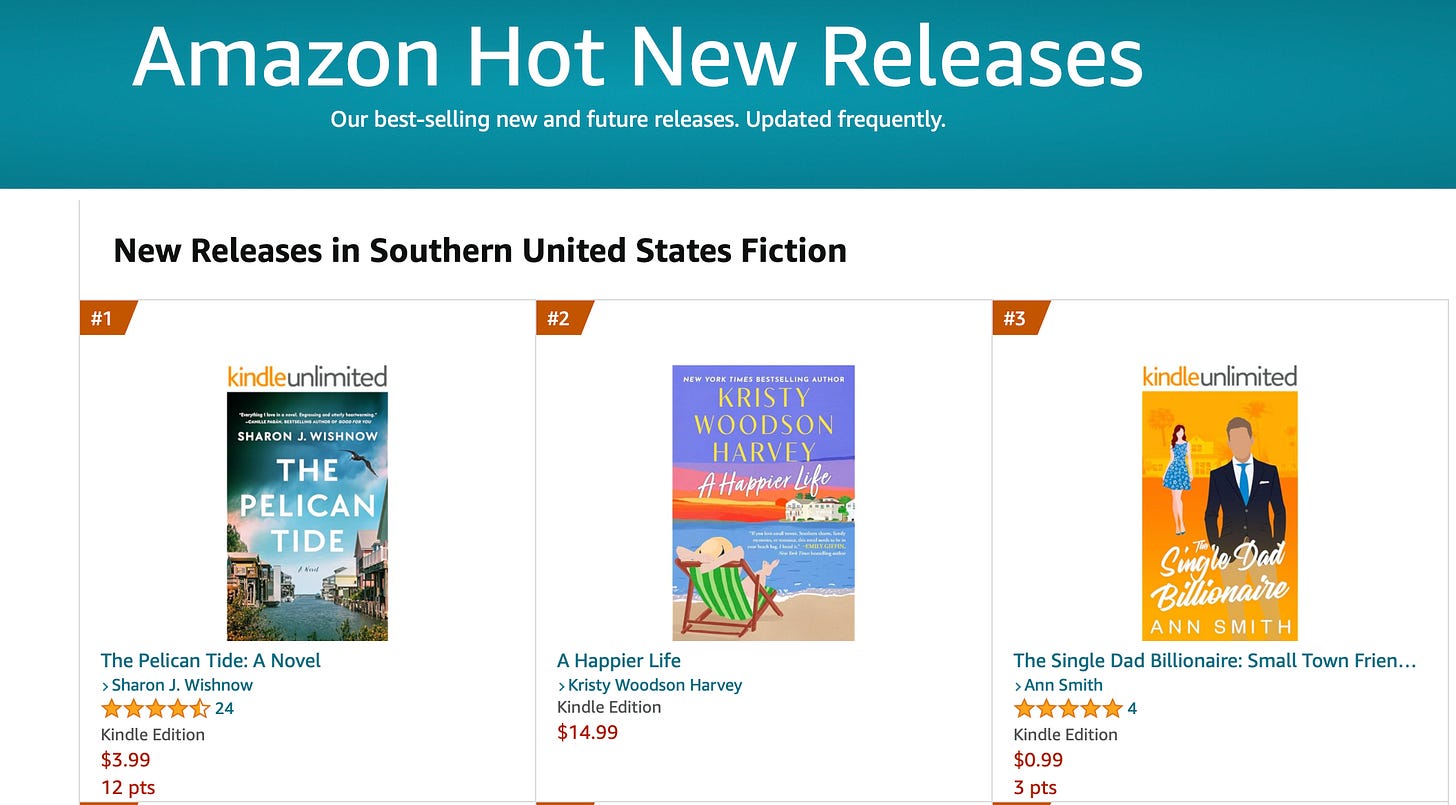 Yesterday the latest surprise hit. The Pelican Tide is the number 1 book on Kindle in Southern United States Fiction. Not bad for a kid from Boston. And while this is only an Amazon marketing/promo rating, and may only last a hot minute, I’m savoring it. I’m using it to propel me through the dark days on my current WIP.